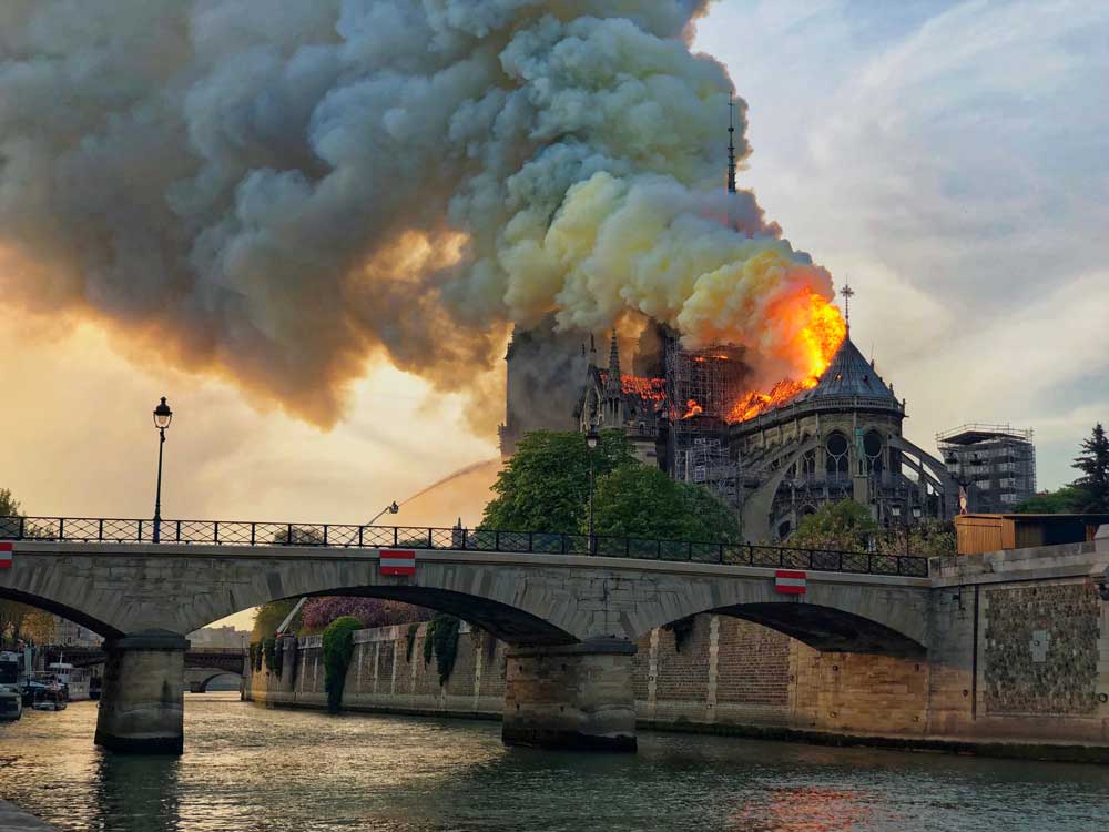 Más de ocho horas han sido las que los bomberos han empleado en la extinción de las llamas que devoraron la cubierta y derribaron la aguja de la catedral de Notre Dame, de ocho siglos de antigüedad, antes de hacerse con el control de la situación, salvando las torres y los muros exteriores.