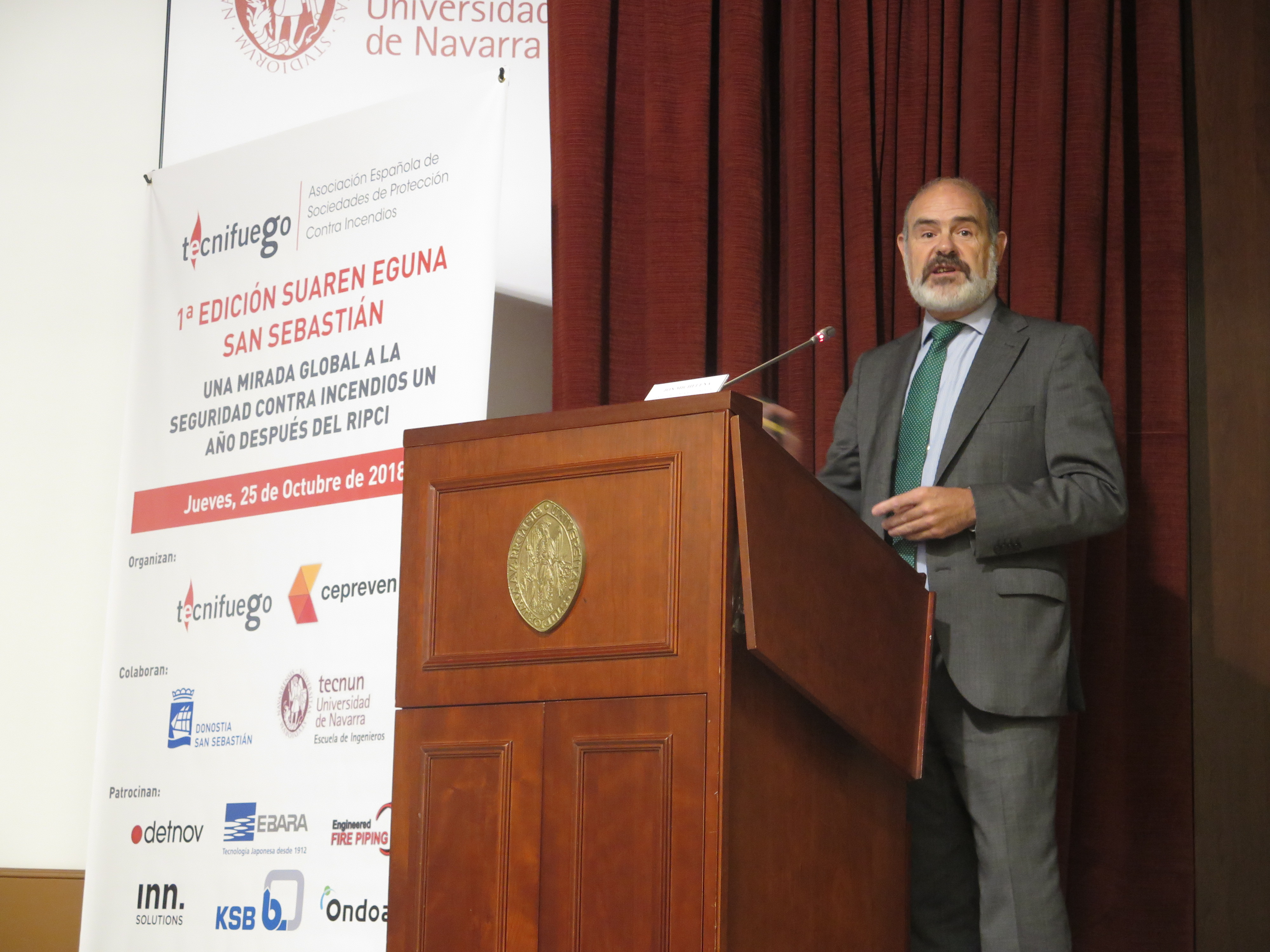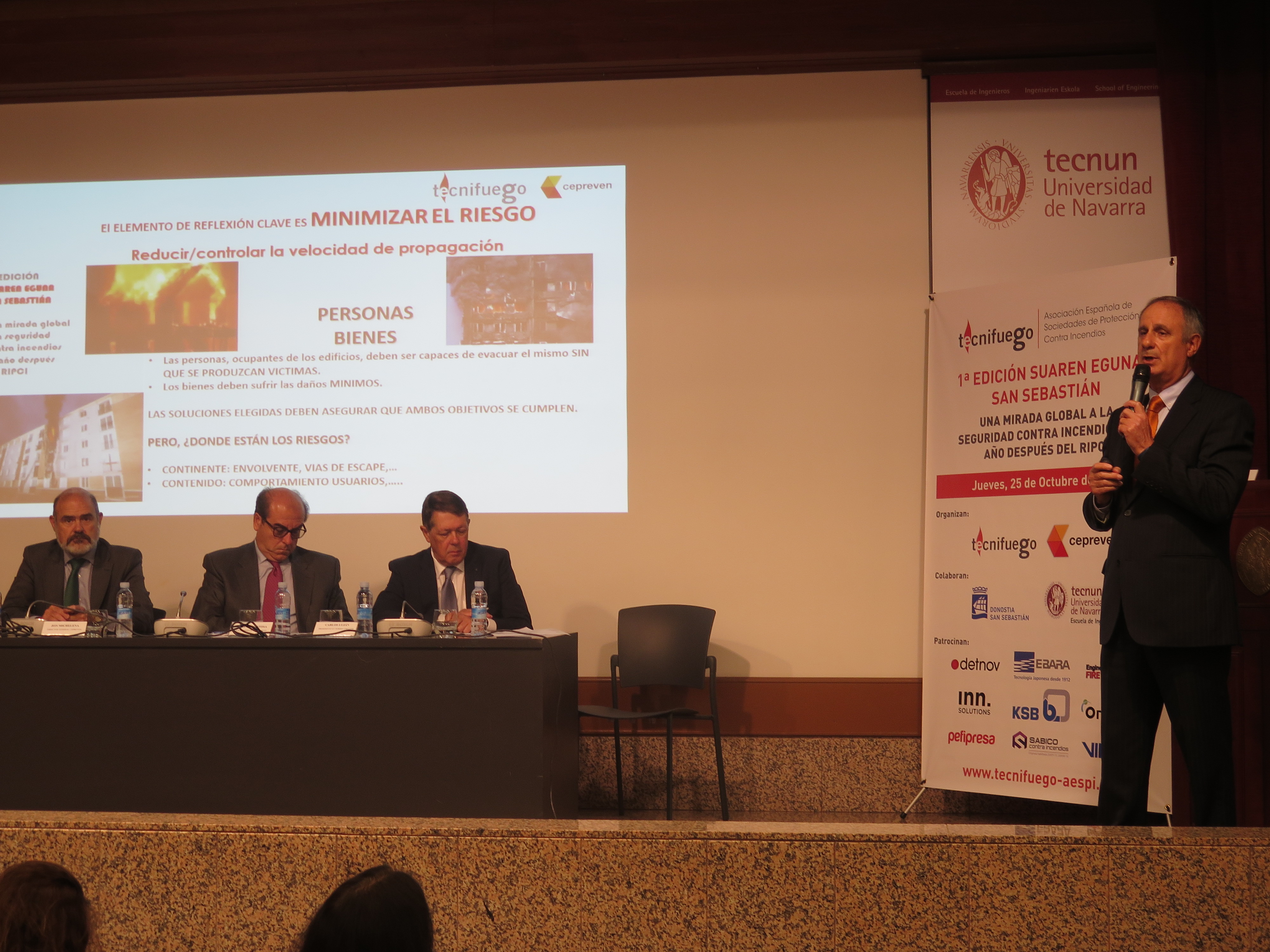 La presentación corrió a cargo de Pedro Rodríguez, responsable del Servicio de Industria del Gobierno Vasco; Nere Gil, del departamento de Ingeniería de la Escuela de Ingenieros TECNUN, y Antonio Tortosa, vicepresidente de TECNIFUEGO, Asociación Española de Sociedades de Protección Contra Incendios.