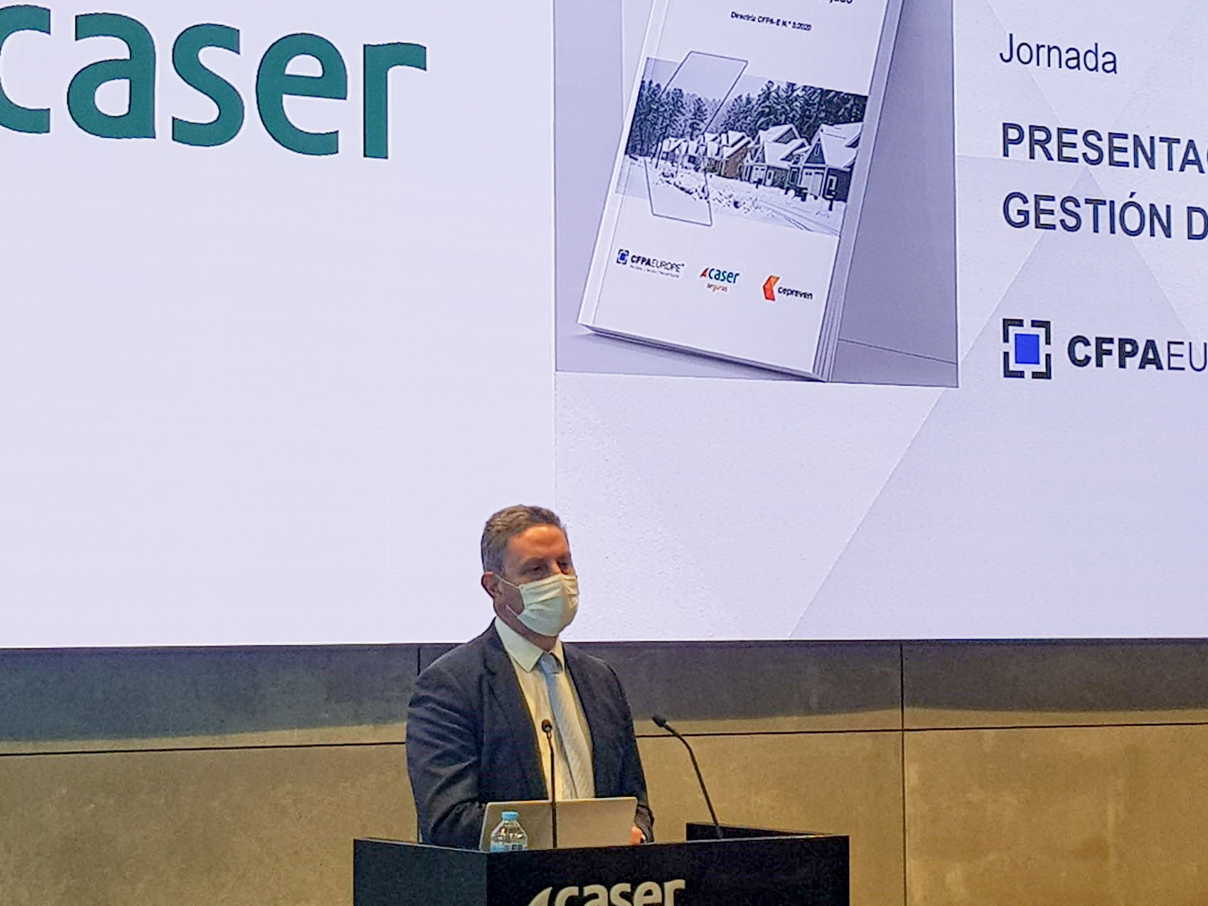 Tras el coloquio, clausuró la Jornada D. Ramón Nadal, Director Técnico de Seguros Generales de Caser, que comenzó su intervención resaltando la labor de CFPA Europa en la elaboración de Guías Técnicas como la presentada en la Jornada. Asimismo, destacó el papel del seguro ante este tipo de catástrofes naturales y la necesidad de concienciar a la sociedad y los servicios de emergencia en la prevención ante este tipo de siniestros, así como la obligación de un correcto mantenimiento y conservación de los edificios públicos y privados, evitando en un futuro situaciones tan arriesgadas y demoledoras como las derivada de Filomena.