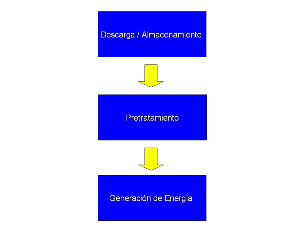A continuación se muestra un esquema de la sección de Pretratamiento de la Biomasa Para que la biomasa pueda ser utilizada como combustible en las calderas se requiere una fase de pretratamiento, que consiste en acondicionar la granulometría de la biomasa hasta niveles óptimos, de esta manera el proceso de posterior combustión será lo más eficiente posible.