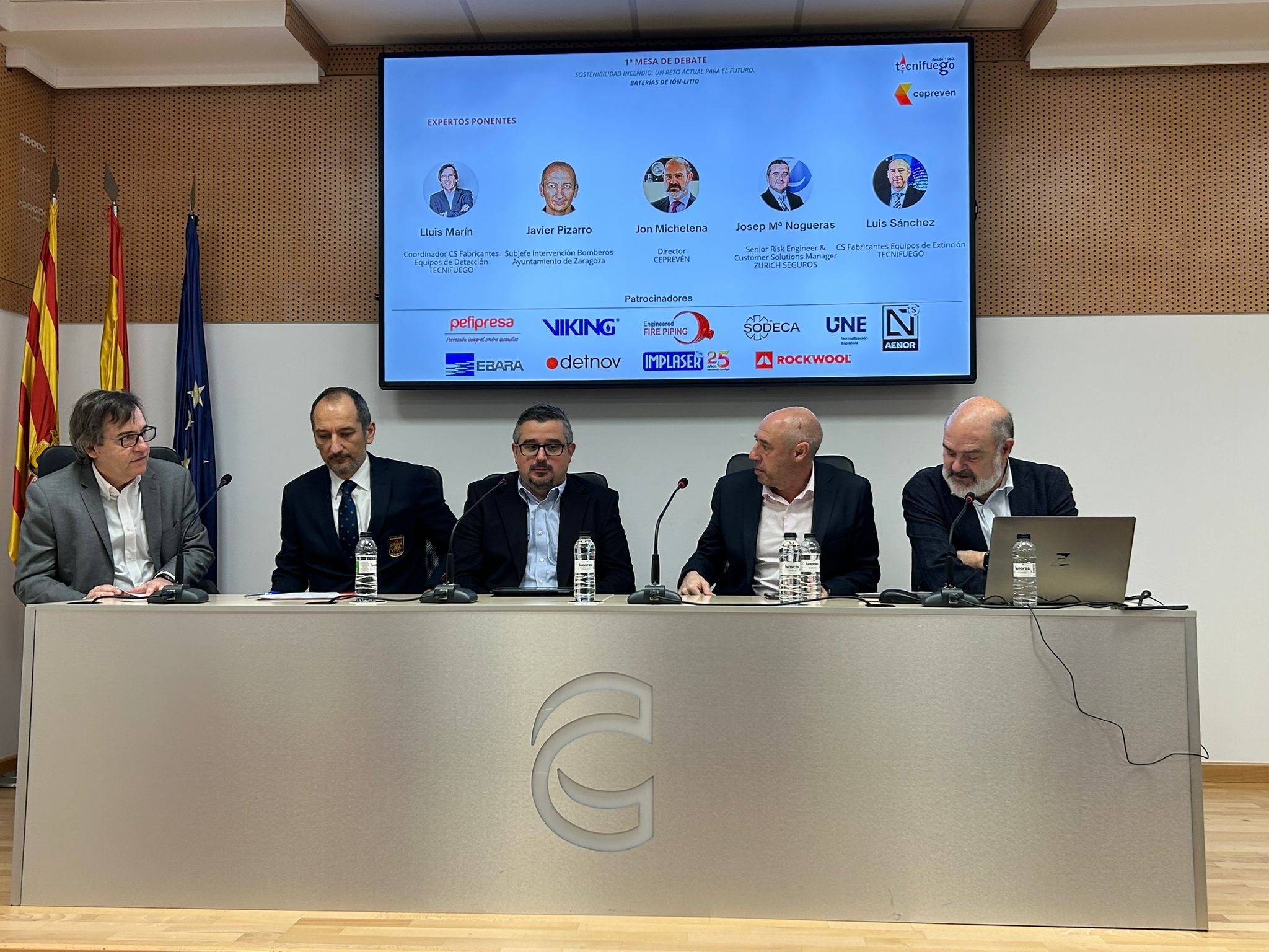 En la 3ª Mesa de debate sobre “Sostenibilidad e incendio: Baterías de ion-litio”, nuestro Director General, Jon Michelena, ha compartido su experiencia y visión junto a destacados expertos del sector, como Antonio Tortosa, vicepresidente de Tecnifuego; Lluis Marín Perpiñá, coordinador del Comité de Detección de Tecnifuego; Javier Pizarro, subjefe Intervención de Bomberos del Ayuntamiento de Zaragoza; Luis Sánchez, del Comité de Instalación de Tecnifuego; y Josep Maria Nogueras Mas, Senior Risk Engineer & Customer Solutions Manager de Zurich Seguros SA.