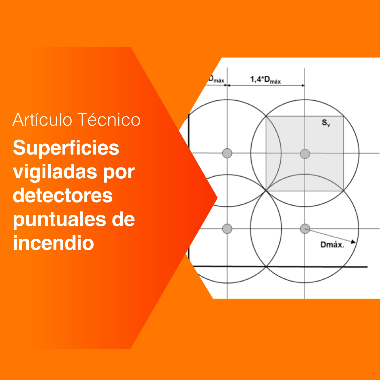 En relación con el concepto de la cobertura por detector, ambas normas establecen claramente, siempre lo han hecho, cuál debe ser la superficie máxima protegida por un detector. Este parámetro es llamado “superficie vigilada” o “área de vigilancia” (Sv en UNE, Amax en CEPREVEN). Esta superficie depende del tipo de tecnología utilizada, de la altura y pendiente del techo, y del área del recinto a proteger. Además, la RT3-DET tiene en cuenta el riesgo inherente al uso del recinto protegido, aplicando un “factor de riesgo” K, igual o menor que 1, que por tanto reduce la superficie de vigilancia admisible por detector en locales de riesgo. En ambos casos es habitual en el diseño, para lograr una primera aproximación al número de detectores a instalar, hacer el cálculo de dividir la superficie a proteger entre la cobertura admisible por detector teniendo en cuenta los condicionantes expuestos.